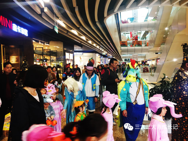 每年的万圣节,商场里都会举办类似活动,小朋友们巡游讨糖大人们为小朋友发糖,还有千奇百怪的万圣节服装装扮和化妆环节,巡游队伍成了商场中的亮点。